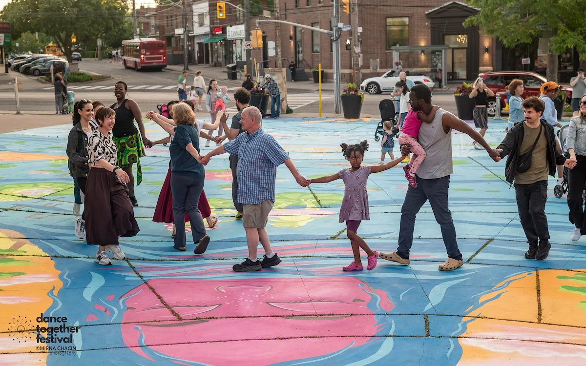 In the summer of 2025, we were back in Mimico for our seventh year with creation of a new dance floor mural and open dance workshops in Bollywood, Vogue, Dances and Rhythms of Africa, Brazilian Forro, Hip Hop, Soca, Vernacular Jazz and Swing. This year also featured live bands, social dancing and performances on the dance floor mural!